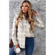 Women's shirt coat with classic plaid pattern which is fashionable and loved by people