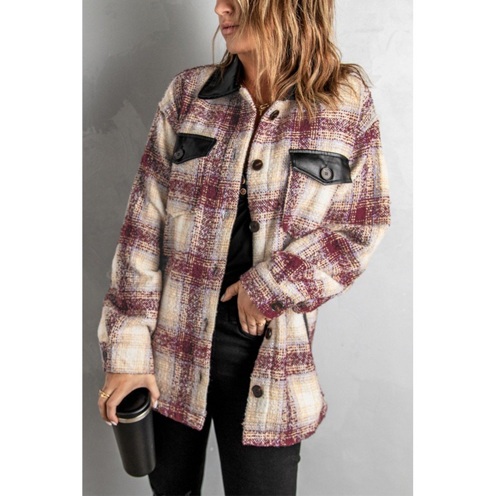 Burgundy tartan jacket is fashionable and classic for years to wear