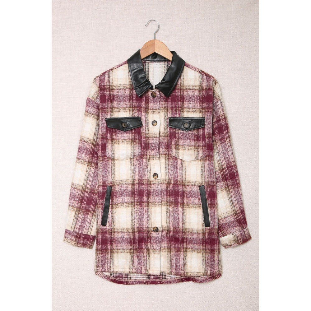 Faux leather turn-down collar and flap pocket design, buttons closure front