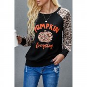 Women's leopard pumpkin print long sleeve crew neck blouse