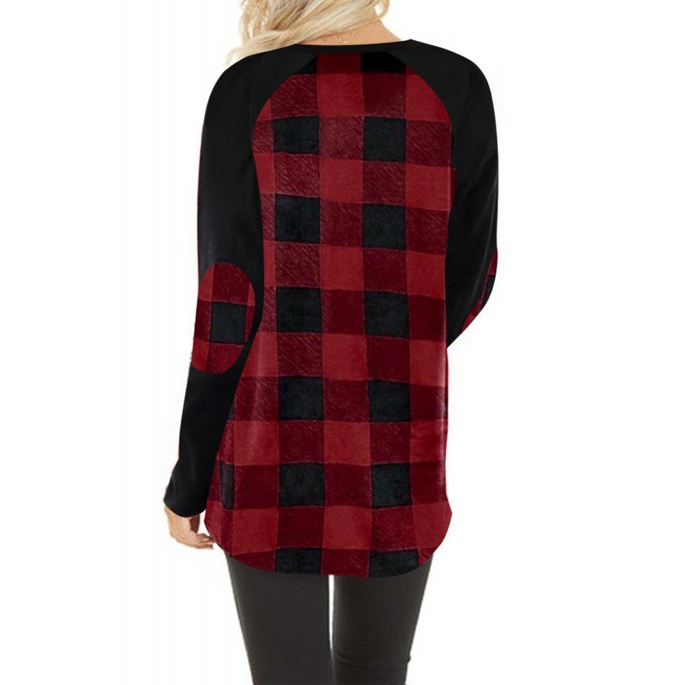 Red buffalo plaid and black long sleeves make up this stylish top