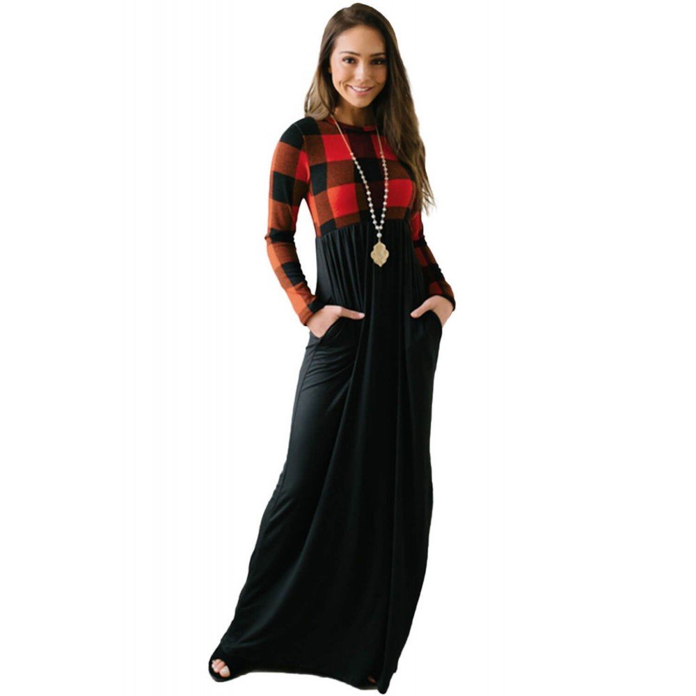 Long sleeve buffalo bodice patchworks with high waist maxi skirt