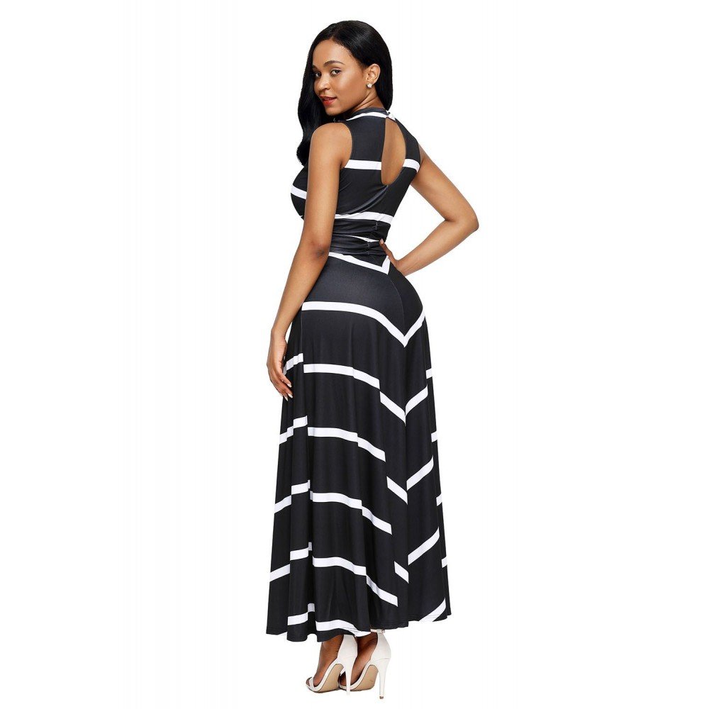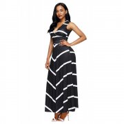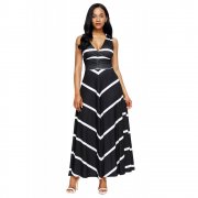 Wherever you go, V Neck Cut out Back Printed Maxi Dress is your confidant to accompany. It's to totally change you an awesome appearance. You're effortlessly looking curvaceous and elegant in this maxi, all the body shapes and ladies love it. It's closefitting the upper bodice while the long skirt is waving. V neck front, cut out back with buttons on nape. The chevron stripes works efficiently on an hourglass silhouette. Don't forget your stiletto heels. Features