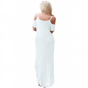 Be pretty and turn heads in this simple chic maxi dress. A real showstopper, this graceful floor-length dress is carefully crafted with signature jersey fabric which boasts an element of stretch, and is soft to the touch and light-weight against the skin. Low neckline, cold shoulder with ruffle sleeves, side pockets, double slit and a round hem finished for a figure-flattering silhouette. The perfect option for cool holiday and casual occasions! Features