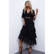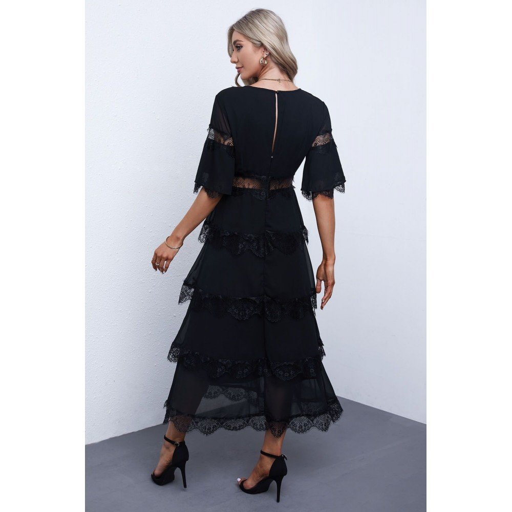 Long dress with see-through lace patch and layered design is delicate and charming, suitable for girls and women