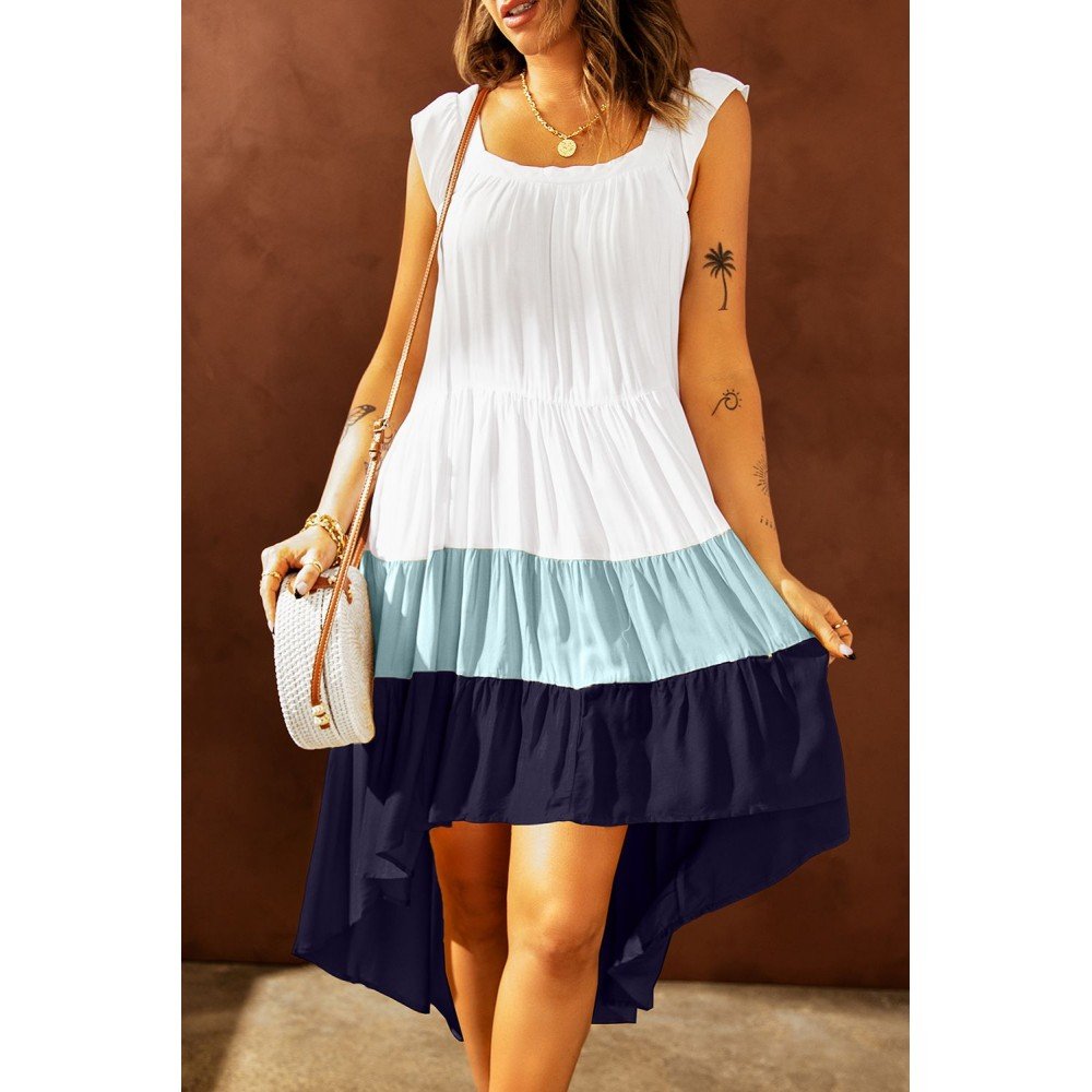 The dress with tiered colorblock and high low design makes you look more fashion and attractive, it makes you to be a fashion icon
